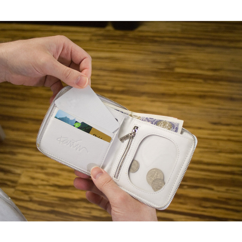 "Ikons" Billfold with Zip, a design by Canada's own Karim Rashid, comes from ACME Studio's line of Designer Leather. It is made of the finest leather, which is digitally printed and has compartments for business cards, credit cards, coins or ID. The designer's signature and the ACME logo are embossed on the inside of the wallet. It is packaged in a black ACME box with a black sleeve.