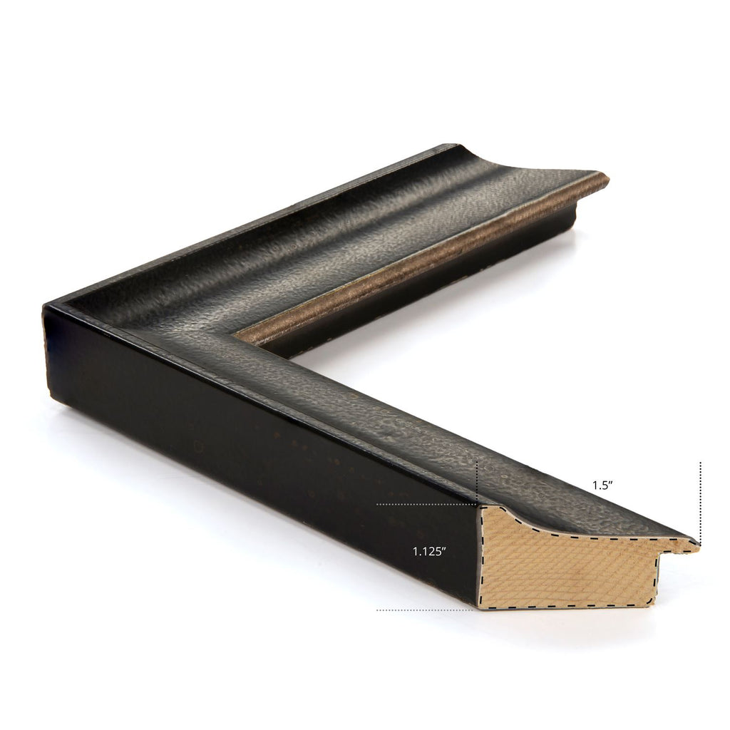 Framed in a distressed, classic black profile with silver inner lip.
