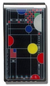 From ACME Studio's line of designer money clips. They are made of chromed steel with a unique design applied to the front. The ACME logo is engraved on the back. This money clip is packaged in a black ACME sleeve.