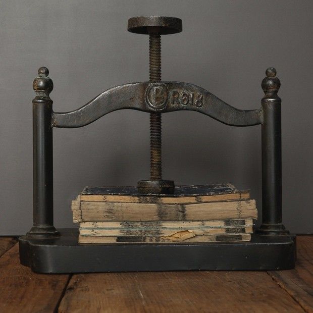 Reminiscent of a vintage paper press, this unique decor will be a reminder of the hard work it took to create greeting cards, memos, books and more. This Vintage Reproduction Paper Press is made of metal and will be a gorgeous accent piece. Use it as a door stop or shelf display for a real conversation starter.